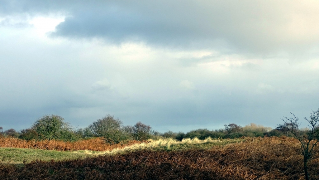 De vele regenwolken gaven het duin een dreigende sfeer, maar brachten ook de hoog nodige regenbuien. De afgelopen droge herfst waren er daarom weinig paddenstoelen te vinden.