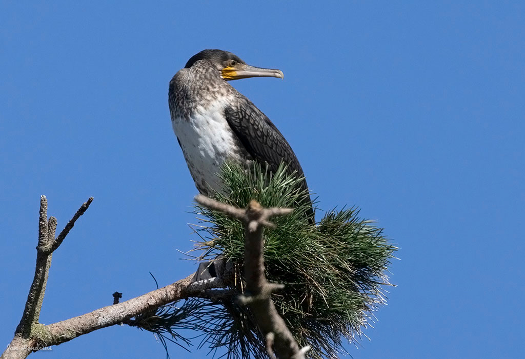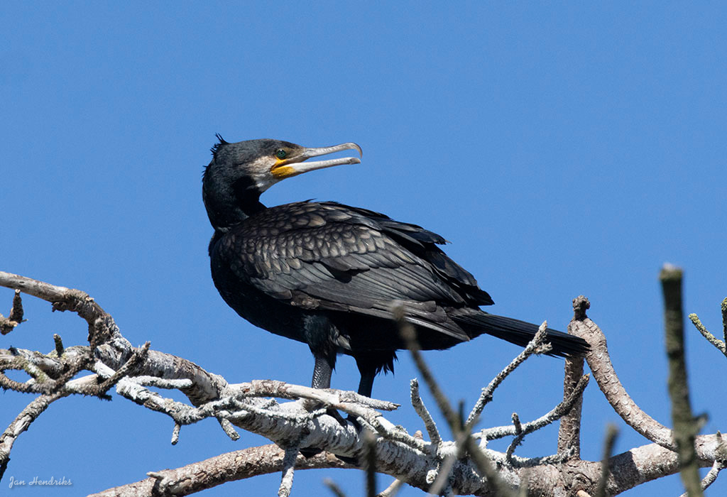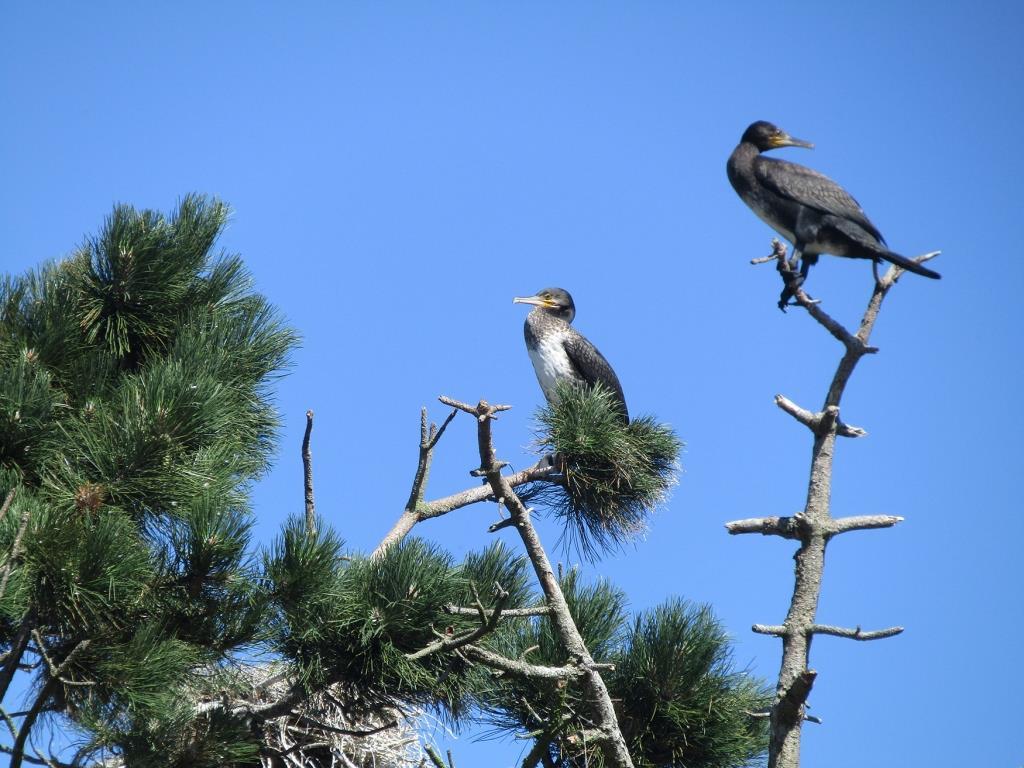 Rondom de grote plas die via een kijkscherm goed te overzien viel, zit een kolonie Aalscholvers. Deze vogels vlogen af en aan. Duidelijk hoorbaar waren ook de bedelgeluiden van de nog aanwezige jonge Aalscholvers. In de infiltratieplas was nog een enkele Fuut te zien en in de struiken rondom de plas waren ook nog een aantal Blauwe Reigers zichtbaar.
