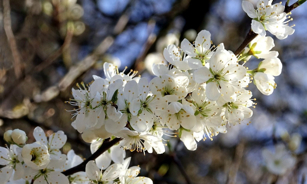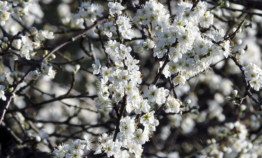 De dagen worden nu langer en warmer, de bomen staan weer volop in knop. De Sleedoorns staan weer als eerste met hun witte bloesem te pronken. Nog even en de bomen komen weer volop in blad, en neemt de Meidoorn met zijn witte bloemen pracht de toon weer over.