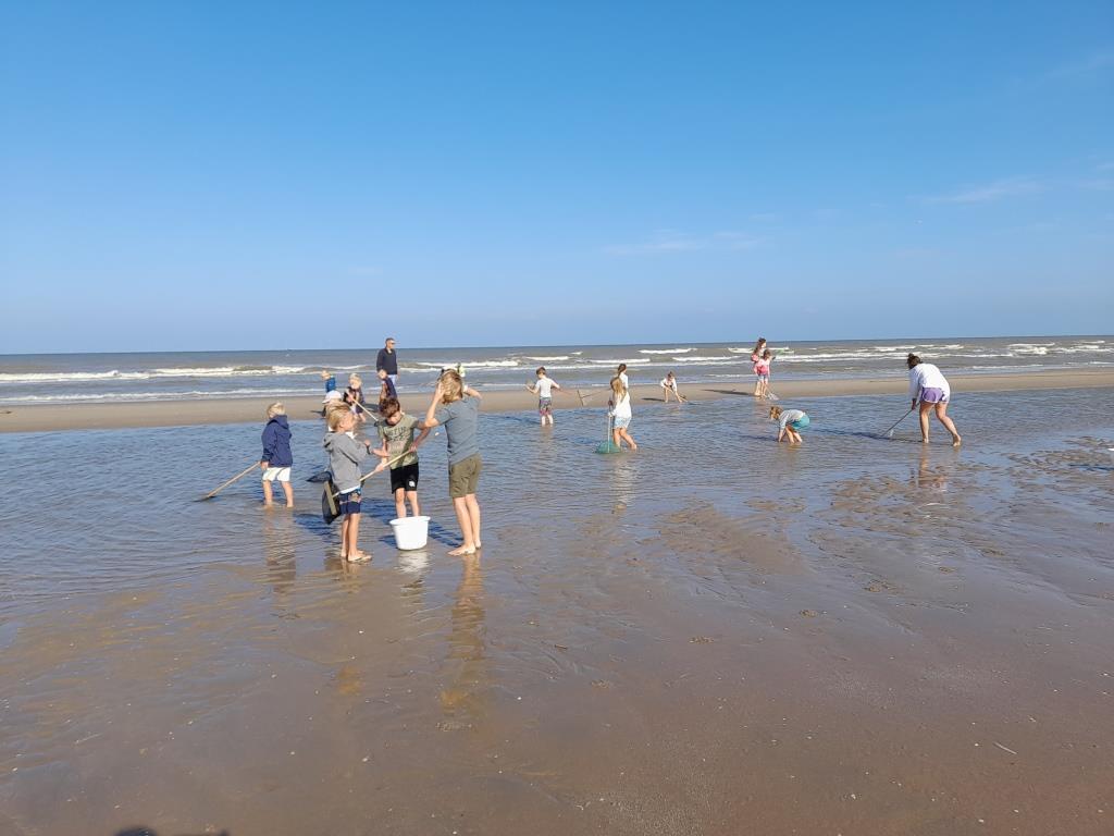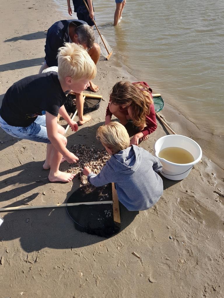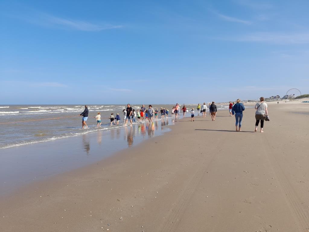 Het kornet werd door Ruurd en Jaap in zee gelegd en Jaco zorgde ervoor dat alle kinderen een plek aan het zeer lange touw kregen. Met vereende krachten werd het net voortgetrokken. Bij beide slepen was er een leuke vangst. Vooral veel harinkjes en garnalen. Ruurd, Jaap, Jaco en Annemarie bedankt voor het helpen. Volgend jaar weer!